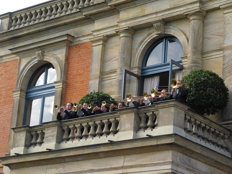 休憩が終わる15分前、10分前、5分前にはそれぞれ次の幕で出てくるファンファーレがバルコニーで演奏されます。