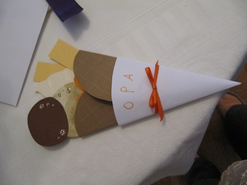 誕生日カードも(こちらに来てから習慣化しましたが)手作りです。今回はあまり時間が取れなかったので比較的簡単にアイスクリームです。日本で買った手作りカードの本に載ってました。ちなみに91歳のおじいちゃんも89歳のおばあちゃんもアイスクリームが大好きです。